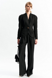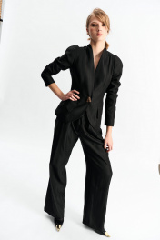 Брюки-палаццо умеренной ширины с акцентной складкой, переходящей на пояс