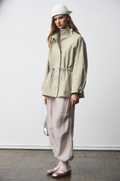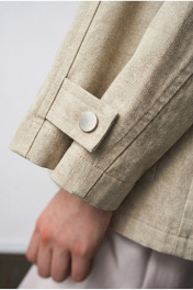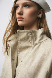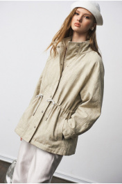 Жакет-парка из фактурного джинса с эффектом замши. Воротник-стойка. Широкий рукав, ширина которого регулируется кнопками. Свободный силуэт, ширина талии регулируется кулиской. Два универсальных размера - S (соответствует 42-44-46), L (соответствует 48-50-52)