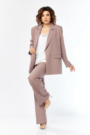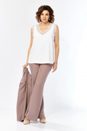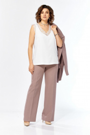 Брюки, жакет, топ Милора-стиль 1367 пудра+белый