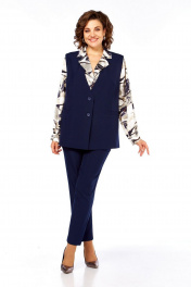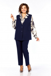 Блуза, брюки, жилет Милора-стиль 1375 синий+абстракция