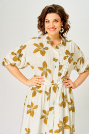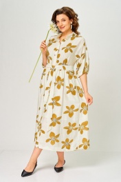 Платье Милора-стиль 1451 молочный/горчичные цветы