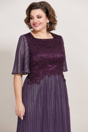 Нарядное платье полу-прилегающего силуэта, выполнено из плиссированной ткани и кружева. Горловина округлой формы, на обтачке, лиф платья отрезной по линии талии, выполнен из кружева, в качестве подкладки атлас. Юбка платья расклешенного силуэта, выполнена из плиссированной ткани, по линии талии аппликация из кружева. Спинка идентична полочке, отрезная по линии талии, верх из кружева, юбка из плиссировки, со средним швом и вытачками, в среднем шве потайная молния. Рукав втачной, расклешенный, оптимальной длины, выполнен из плиссировки. Эффектное, нарядное платье прекрасный выбор для торжественных мероприятий! в 52р. Ширина груди- 53см, Ширина талии -47см, Ширина бедер- 59см, длина рукава- 32см от плеча, ширина рукава 23см Длина 138