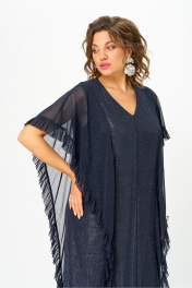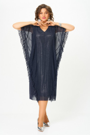 Женское платье полуприлегающего силуэта, выполнено из сетки с люрексовой полоской с серебристой подкладкой. Горловина V-образной формы, обтачена, на полочке выполнен средний шов, также выполнены вертикальные подрезы, в них втачены отлетные детали с рюшей. Отлетные элементы по боковым подрезам прекрасно скрывают некоторые недостатки фигуры и визуально делают силуэт стройнее. Спинка идентична полочке, как и полочка, выполнена из сетки с люрексовой полоской, в качестве подкладки серебристый текстиль. Элегантное платье из эффектной ткани и оригинальным кроем отлично подчеркнёт достоинства фигуры и сделает ваш образ стильным. в 58р. Ширина груди- 63см, Ширина талии -65см, Ширина бедер- 69см, длина рукава- 36см.