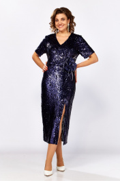 Нарядное платье, полуприлегающего силуэта, выполнено из ткани в пайетки, на трикотажной подкладке. Лиф платья отрезной по линии талии, пояс втачной, горловина V-образной формы, обтачена подкладкой. Юбка платья прямого покроя, с разрезом по одной стороне. Спинка из пайеток, рукав втачной, укороченный, из пайеток, по линии талии на полочке декор в виде съемного цветка ручной работы. Эффектное, стильное платье выполненное из пайеток прекрасно дополнит ваш образ! в 52р. Ширина груди- 53см, Ширина талии -47см, Ширина бедер- 57см, длина рукава- 25см, ширина рукава 18,5см.