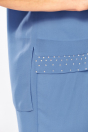 Брючный нарядный костюм для женщин выполнен из качественного шифона, который отличается легкостью и приятен на ощупь. Брючный костюм на торжество не мнется и сохраняет свою форму, прекрасно "дышит" за счет трикотажного подклада. Яркость ткани добавляют наряду для женщин праздничный вид, а весенние оттенки создадут праздничное настроение. Горловина округлой формы, обтачена подкладкой, по переду выполнены вытачки, по низу ассиметричный крой с планками, декорированными стразами. Рукав втачной, оптимальной длины, из шифона. Брюки из шифона, на подкладке, верхний срез обработан поясом на резинке. Благодаря свободному крою, он обеспечит комфорт и свободу движений. Брюки с высокой посадкой визуально стройнят фигуру и идеально подходят для полных женщин. Основные особенности брючного торжественного костюма: широкий размерный ряд, свободный силуэт, рукава ниже локтя, брюки на резинке. Этот нарядный вечерний костюм больших размеров отлично подходит для мероприятий, таких как свадьба или юбилей, торжество, корпоратив, маме на выпускной, маме невесты, маме жениха на свадьбу. В 52р Блузка: Ширина груди- 55см, Ширина талии -58см, ширина бедер - 59см, длина рукава- 30см, ширина рукава 21см. Брюки: Ширина бедер -59см, Ширина талии- 38см. Длина блузы 72см, длина брюк по боковому шву 106см, длина брюк по внутреннему шву 77см.