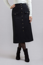 Черная миди юбка-трапеция из габардина с рельефами Mirolia 1213 чёрный