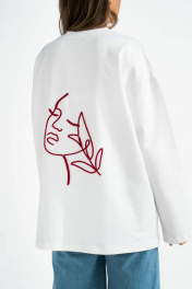 Хлопковый ЛОНГСЛИВ из турецкого качественного полотна с длинным рукавом,со спущенной линий плеча выполнен в одном размере one size , украшен уникальной вышивкой "Шнуром" на спине и вышивкой Mirolia спереди. Хлопковый джемпер– это прекрасная основа для создания повседневных нарядов. Добавьте свои любимые джинсы, обувь и аксессуары, чтобы создать стиль, подчеркивающий вашу индивидуальность. Подойдёт на размеры 44-52. Рост модели 164 см, размер 44. Длина Джемпера : 72 см Длина рукава включая плечо 44 см. Полуобхват джемпера: 62 см