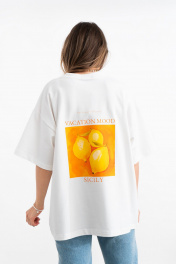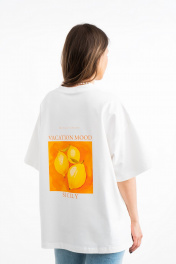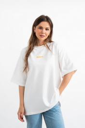 Белая хлопковая футболка с принтом и вышивкой для ежедневного стиля Mirolia 1227-3 оранжевый