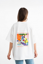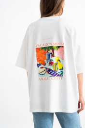 Белая хлопковая футболка с принтом и вышивкой для создания образов Mirolia 1227-5 розовый