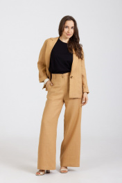 Комплект 2-ух предметный, из натурального мягкого льна "с эффектом мятости" состоит из Жакета и Брюк. Жакет полуприлегающего силуэта без подкладки, передние части с рельефами и карманами в шве , спинка со средним швом и рельефами, застёжка на 1 петлю и пуговицу. Рукав втачной, двухшовный. Брюки "палаццо" свободные от бедра изготовлены из натурального льна с "эффектом мятости". По переду внутренние карманы. Очень удобные. Застёгиваются спереди на молнию и 2 пуговицы. В задней части пояса вставлена резинка. Посадка: высокая .