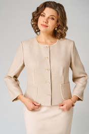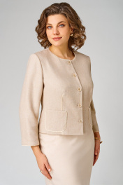 жакет - вискоза 60%, ПЭ 37%, спандекс 3%; юбка - ПЭ 44%, вискоза 39%, лен 17%