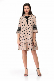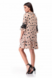 Свободное платье из вискозы с воланом, украшенным бусинами и кружевом Мишель стиль 927 бежево-черный
