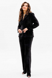 Черный жакет и брюки из бархата с карманами Mislana 1169 черный/бархат