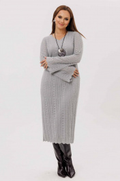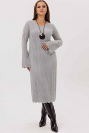Платье трикотажное на подкладке. Платье выполнено из трикотажного полотна с ажурным (кружевным) рисунком. Полотно средней плотности, эластичное, с мягким прилеганием по фигуре. Изделие полуприлегающего силуэта, длиной миди, с V-образным вырезом горловины и длинным втачным рукавом. Низ рукавов и низа изделия обработан фигурным краем полотна, что придаёт модели завершённый декоративный акцент. Для комфортной посадки предусмотрена трикотажная подкладка по всей длине изделия.