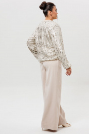 Этот готовый костюм с бомбером из пайеток (Арт. 1279) — идеальное решение для тех, кто хочет выглядеть ярко и стильно. Комплект включает в себя бомбер с пайетками и соответствующие ему брюки из костюмной ткани с напылением. Мерцающая куртка и светлые брюки создают целостный и дерзкий ансамбль, который не останется незамеченным. Такой костюм для вечеринки станет вашим лучшим выбором для посещения клуба, тематического мероприятия или любого события, где важно подчеркнуть свою индивидуальность. Размеры 48-54.