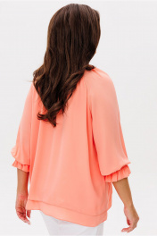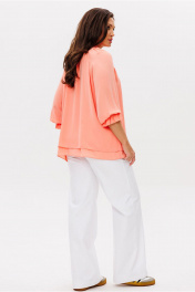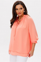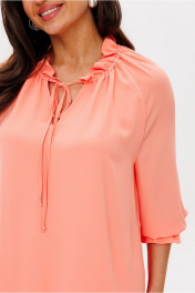 Блуза свободная, двойная. Рукава реглан, по низу со сборкой на резинку. V-образный вырез. Горловина со сборкой на кулису.