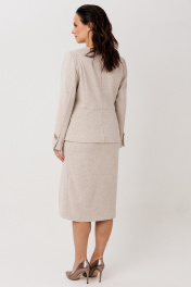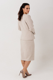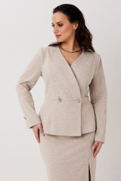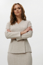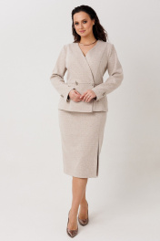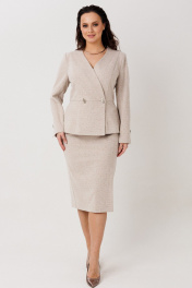 Элегантный костюм-двойка, выполненный из фактурной костюмной ткани, сочетает классику и современный крой. Двубортный жакет-запах с V-образным вырезом и запаховой конструкцией дополнен декоративной застежкой на уровне талии, создающей эффект приталенности. Жакет на подкладке. Юбка-карандаш с боковым разрезом и эластичной резинкой в поясе гарантирует удобство и идеальную посадку по фигуре. Конструктивные особенности: Костюмная ткань с добавлением эластана — сохраняет форму, устойчива к морщинам и износу. Приталенный силуэт жакета и юбка с эластичным поясом создают баланс между строгостью и комфортом. Идеален для деловых встреч, официальных мероприятий и повседневного стиля. Комплект соответствует трендам 2026 года, сочетая традиционные элементы костюмной моды с современными деталями.