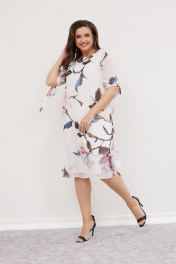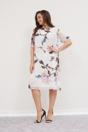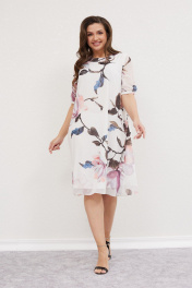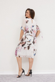 Белое платье на подкладке с кружевными деталями и розовым поясом Mislana С953 крупный цветок