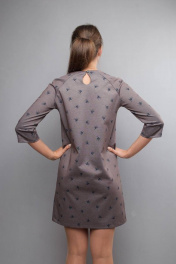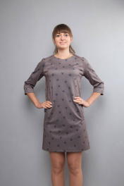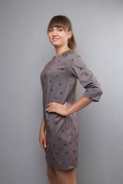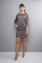 Платье прямого силуэта из хлопка с карманами листочка Mita ВМ001 серо-розовый