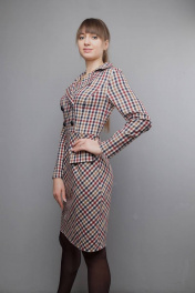 Приталенное платье с отрезным по линии талии кройом и воротником Mita ЖМ1022 клетка
