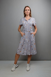 Платье полуприлегающего силуэта с карманами Mita ЖМ1038 серый_фон-горох