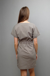 Платье приталенного силуэта с поясом и спущенным рукавом Mita ЖМ1093 бежево-серый