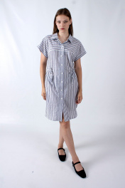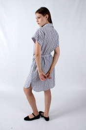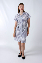 Платье прямого силуэта с рукавом фонарик и кулиской Mita ЖМ1186 синий_полоска