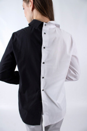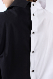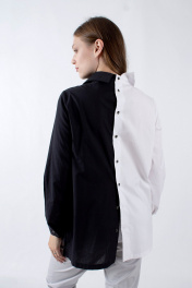 Длина изделия: 75 см. Длина рукава: 63 см. Рубашка прямого силуэта. Втачной рукав на манжете. Отложной воротник. Застёжка на пуговицах по переду и спинке.