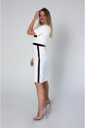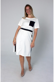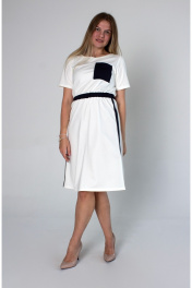 Платье с резинкой из трикотажа и декоративными вставками Mita ЖМ1204 белое