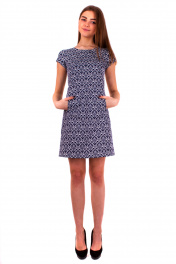 Длина изделия: 82 см Длина рукава: 12 см Платье трапециевидной формы. Короткий рукав. Карманы листочка. Вытачки по спинке