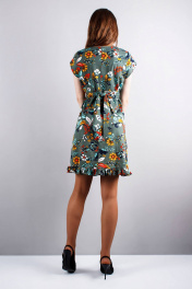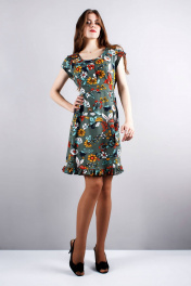 платье отрезное с воротом и оборками Mita ЖМ818 зеленый+цветы