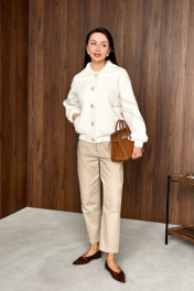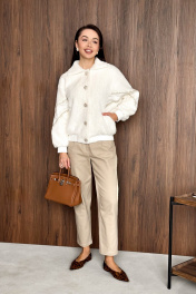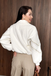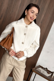 Джемпер в актульном крое в стиле олимпийки из приятного пушистого полотна. НЕ КОЛЕТСЯ. Застежка на премиальные дизайнерские пуговицы. Рукава декорированы тесьмами. Низ на резинке. Джемпер на подкладке. Длина джемпера 63 см, длина рукава от воротника 70 см. ОГ 42-44 р-р 124-126 см, 46-48 р-р 132-134 см. Состав 100% ПЭ