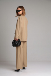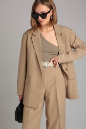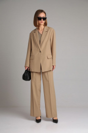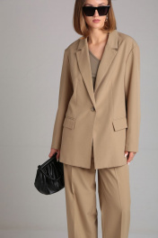 Костюм двойка ( жакет + брюки ) из легкой костюмной ткани. Жакет однобортный. Брюки прямого силуэта с защипами по талии. Длина жакета 75-77 см. Длина брюк 112-114 см Состав 70% п/э, 28% нейлона, 2% лайкры