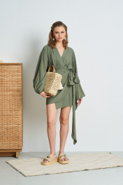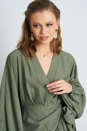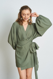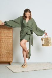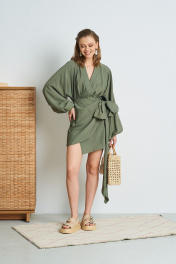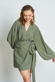 Платье из жатой ткани с запАхом. Длина платья 84 см. Состав 85% вискоза, 15% ПА.