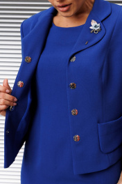 Костюм женский, состоящий из платья и жакета. Платье прилегающего силуэта. Спереди с рельефами, переходящими в вытачки. Спинка со средним швом, переходящим в шлицу. Рукав одношовный втачной. Горловина платья обработана подкройной обтачкой. Жакет прилегающего силуэта. По переду жакета рельефы, выходящие из проймы, и накладные карманы. Спинка со средним швом и рельефами. Застежка на декоративные кнопки. длина спинки жакета: 56,5 см длина платья: 112 - размеры 48-52 110,5 - размер 54 длина рукава: 50 см