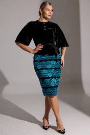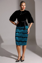 Жакет, юбка Мода Юрс 25-2623 черный_бирюза