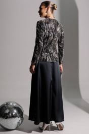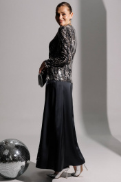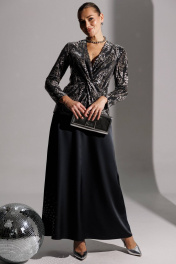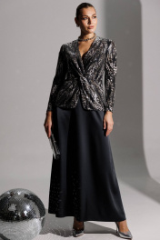 Продолжением нашей нарядной коллекции является роскошный комплект, состоящий из блузы, имитирующей жакет, и невероятной струящейся юбки из атласа длины макси. Блуза из ткани в пайетки с декоративным узлом в области талии. V-образный вырез. Блуза приталенного силуэта с втачными, двухшовными рукавами. Блуза частично на подкладке. Юбка на поясе с резинкой. длина спинки блузона: 62 см длина рукава: 57 см длина юбки по боковому шву: 102см