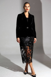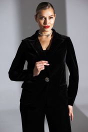 Встречайте праздники в обнимку с бархатом! Мы создали роскошную новогоднюю капсулу, состоящего из элегантного жакета, корсета, брюк из велюра и юбки. Жакет выполнен из роскошного бархата, имеет полуприлегающий силуэт и центральную застежку на одну отделочную пуговицу. Спинка оформлена средним швом и вертикальными рельефами, что подчеркивает фигуру. Передняя часть жакета дополнена талиевыми вытачками и боковыми швами., что придает ему изысканность. Карманы в рамку с клапанами добавляют функциональности, а воротник пиджачного типа завершает образ. Рукава жакета втачные, двухшовные, что делает его удобным и стильным. Жакет не имеет подкладки, что делает его легким и подходящим для разнообразных мероприятий. Наш бархатный жакет - это не просто вещь, это ключ к безупречному праздничному образу. Его мягкий блеск и королевская фактура делают его главным героем любого ансамбля. длина по спинке: 64 см длина рукава: 62 см