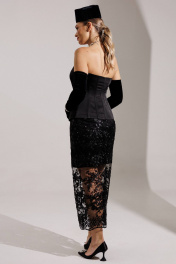 Позвольте представить изящное продолжение нашей новогодней коллекции - юбку из черного гипюра. Юбка состоит из двух слоев: верхняя часть выполнена из гипюра, заужена к низу и имеет длину миди, дополненную каймой по низу. Разрез и молния расположены сзади, обеспечивая легкость в носке и стильный вид. Нижняя юбка служит подкладкой и выполнена в мини-длине, что создает эффектный контраст с верхним слоем. Соберите идеальный ансамбль, дополнив юбку корсетом и бархатным жакетом. Вместе они создают законченный образ, одновременно смелый и невероятно женственный. длина юбки по боковому шву: 51/94 см