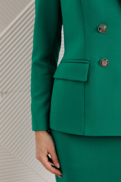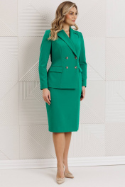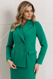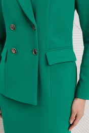 Сомневаетесь, выбрать для важной встречи строгий костюм или элегантное платье? Предлагаем блестящий компромисс! Платье-блейзер полуприлегающего силуэта, длиной ниже колена.Имитация жакета придаёт деловой стиль. Воротник пиджачного типа. Застёжка двубортная на 2 пары пуговиц,в левом боковом шве- потайная молния. На полочке присутствует рельеф из проймы до низа,в котором обработана шлица, обработаны карманы «в рамку с клапаном».Спинка со средним швом и талевыми вытачками. Рукава длинные, двушовные. Платье частично на подкладке. Вы получаете весь эффект от сложного ансамбля, минуя лишние сложности. Платье подчеркивает Ваш статус и деловой настрой.