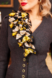 Что делает образ женственным и романтичным? Конечно же силуэты, подчеркивающие женскую фигуру, а также такие ткани как органза, шелк, шифон. Дизайнеры бренда "МОДА-ЮРС" предлагают Вам новинку - жакет из шерсти со съемным шарфом из органзы в тандеме с юбкой из однотона. Данная модель смотрится очень стильно и женственно. Такой жакет может стать основой многих образов. Смело сочетайте его со своими праздничными и деловыми блузами. Жакет полуприлегающего силуэта. По переду и спинке с талиевыми вытачками, на полочках обработаны карманы. Спинка со средним швом. Рукава втачные, двухшовные, сверху по окату со складками. Застежка центральная на петли-пуговицы. Жакет декорирован съемным шарфом, нижняя часть которого застегивается на петли-пуговицы. Юбка прямая, зауженная к низу, сверху на притачном поясе, по бокам с резинками. Застежка на тесьму-молнию в среднем шве, который переходит в шлицу. длина жакета: 65 см длина рукава: 62 см длина юбки: 70 см