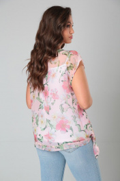 Двух предметный комплект, состоящий из однотонного топа и блузы из шифона. Топ на бретелях. Блуза свободного силуэта с удлиненным плечом. Низ с притачным поясом и завязывающимися концами. Замеры изделия в готовом виде: Топ 50-52 -54 Ширина по линии груди:108-112-116см Ширина по линии бедер:117-121-125см Блуза 50-52-54 Длина по спинке: 61-63cм Длина по линии плеча от горловины: 21-22см Ширина по линии груди:111-115-119см Ширина по линии бедер:118-122-126см