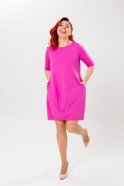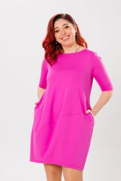 Стильное женское платье-баллон, выполненное из трикотажного полотна (тянется) с легким ненавязчивым блеском. Перед и спинка цельные с косыми подрезами в нижней части. Горловина округлой формы. Рукав втачной одношовный. В боковых швах карманы. Платье без подкладки. Длина платья по среднему шву спинки – р50,52,54 – 94, р56,58,60 – 98 Длина рукава во всех р-ах – 35 Ширина рукава на уровне глубины проймы ½ - р50-20, р52-20,5, р54-21, р56-22,5, р58-23, р60-23,5 Ширина рукава внизу ½ - р50-14, р52-14,5, р54-15, р56-15,5, р58-16, р60-16,5 ОГ ½ - р50-53, р52-55, р54-57, р56-59, р58-61, р60-63 ОТ ½ - р50-54, р52-56, р54-58, р56-60, р58-62, р60-64 ОБ ½ - р50-64, р52-66, р54-68, р56-70, р58-72, р60-74
