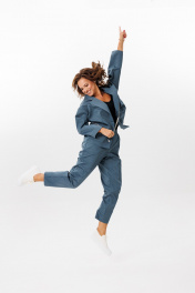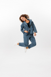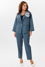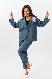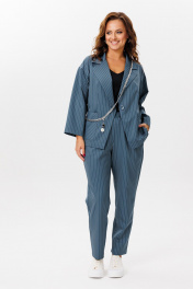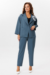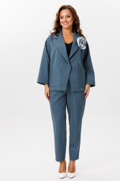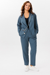 Деловой костюм из полосчатого текстиля жакет и брюки Mubliz 200 морская_волна
