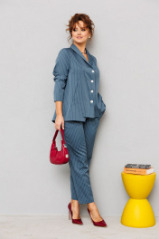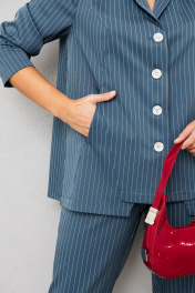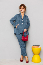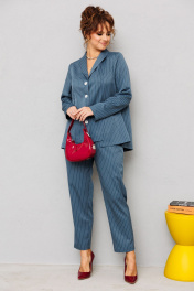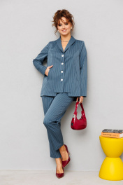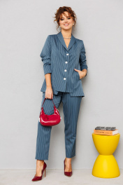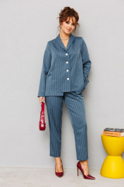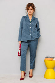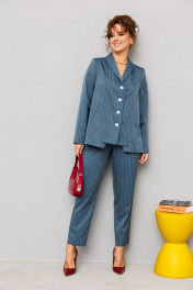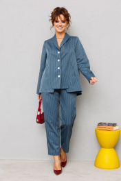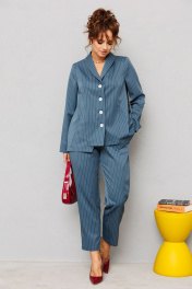 Деловой костюм жакет и брюки в полоску из костюмного текстиля Mubliz 223 морская_волна_полоска