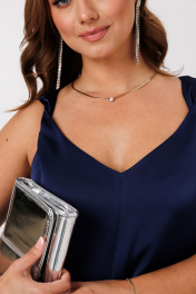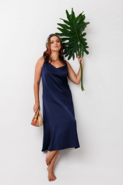 Элегантный женский комплект, состоящий из жакета и платья. Жакет полуприлегающего силуэта, выполнен из костюмной ткани (тянется), на подкладке. По переду рельефные швы, застежка встык, горловина округлой формы. По спинке средний шов и талиевые вытачки. Рукава втачные, двухшовные. Жакет с плечевыми накладками. Платье А-силуэта без рукавов, выполненное из струящего шелка «Армани» (тянется). По переду и спинке центральные вертикальные швы. Горловина оформлена V-образным вырезом с акцентом на верхней части – декоративным перекрутом в области бретелей. Мягкая драпировка добавляет образу мягкости, романтичности и элегантности. Верхняя часть лифа на обтачке до линии талии.