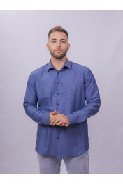 Рубашка slim из хлопка с классическим воротником Nadex 01-061811/201-24 темно-джинсовый_мини-оксфоррд