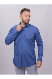 С синяя деловая рубашка из гладкого хлопка с классическим воротником Nadex 01-094811/204-24 деним
