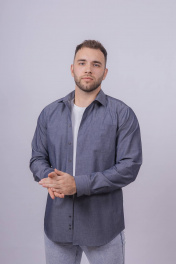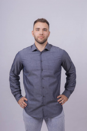 Гладкая рубашка с одним карманом и классическим воротником Nadex 01-088912/201-24 темно-серый