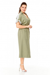 Платье прямого силуэта на притачной планке по полочке и потайной застежкой, Воротник рубашечного типа, рукав цельнокроеный на пате, спинка со средним швом и притачной кокетке. Длина рукава: 30 см. Длина изделия: 128 см.